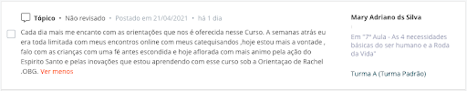 Os alunos encontram, também, no Curso um acesso direto à formadora Rachel Abdalla através do WhatsApp, fazem agendamento de mentorias e, até mesmo, têm um apoio direto em algumas necessidades específicas relacionadas à catequese.